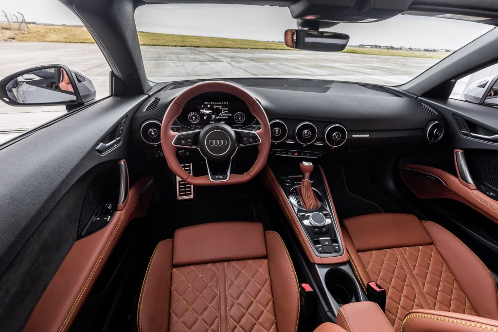 Apart from the Mocassin Brown Nappa leather, the cabin features S sport seats and all the latest upgrades from the facelifted 2019 TT model series, including a standard Audi phone box with wireless charging and signal booster.