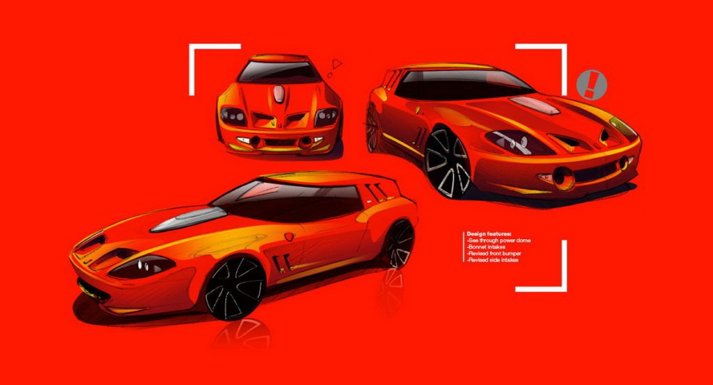 The design studio has released the first sketches of the one-off creation, which is going to be based on a Ferrari 550 Maranello. The process will include a full re-body of the V12 supercar, with the studio noting that only the windscreen will remain the same.