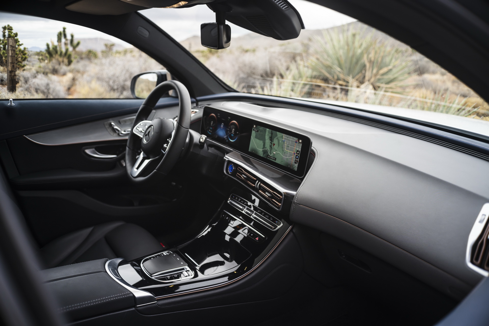 Speaking of which, the high-quality interior of the EQC features rose-gold colored louvers for the air vents, the latest MBUX infotainment system with the dual-screen setup and a dashboard with a clear orientation towards the driver.