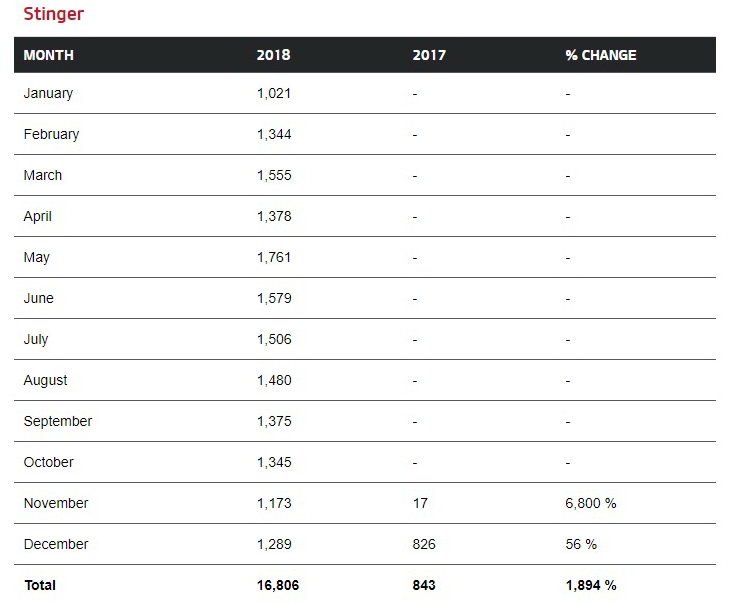 In its first full year on the US market, the Kia Stinger managed to find 16,806 customers, which sounds like a solid performance for a newcomer in the mid-sized car segment.