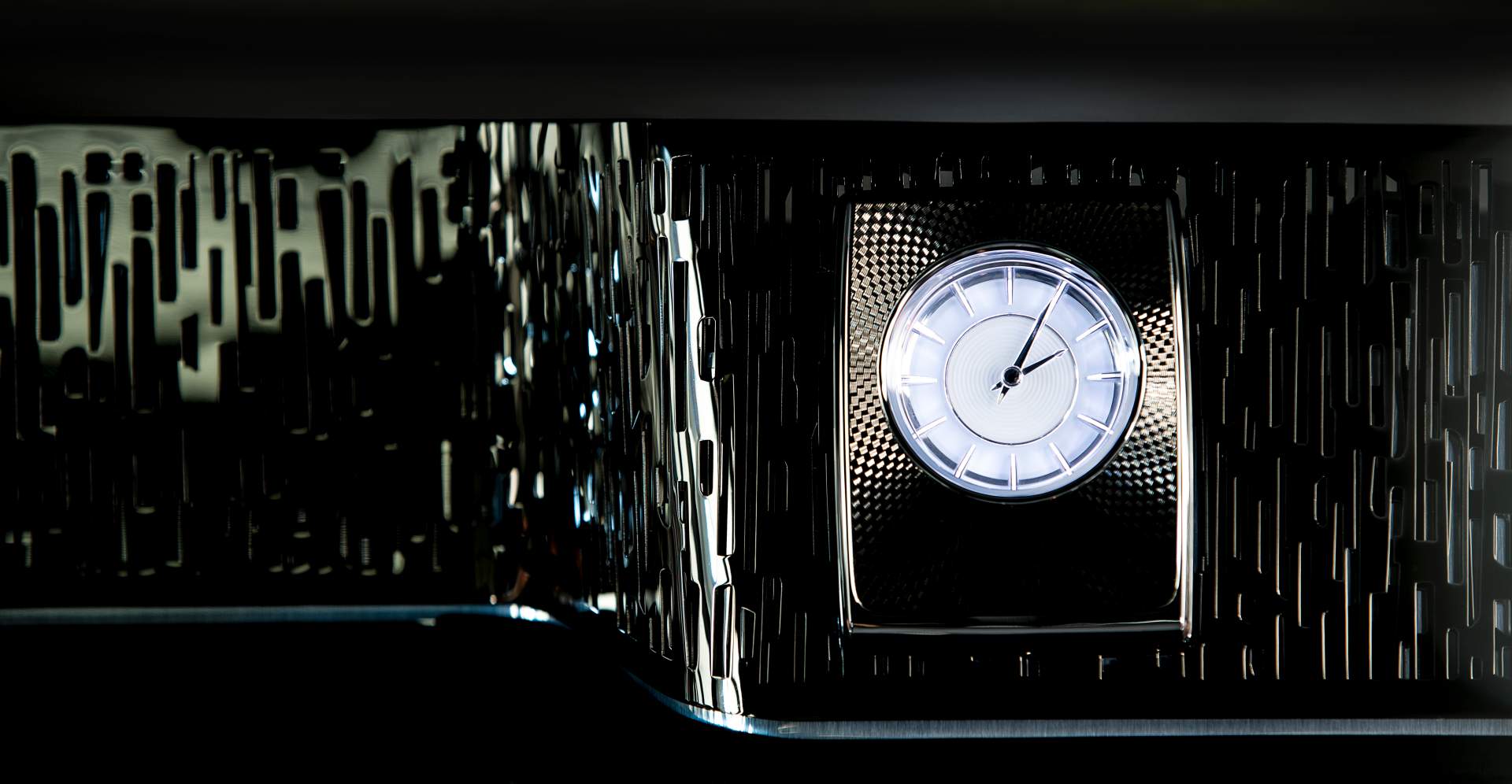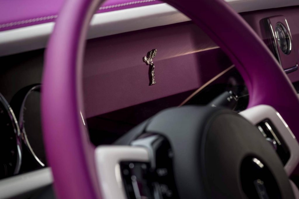 This highly-personalized Phantom known as the “Gentleman’s Tourer” features a Gallery made from ruthenium, a precious metal from the platinum group. This metal is much rarer than gold, as only 20 tonnes are mined annually — compared to 2,500 tonnes of gold.