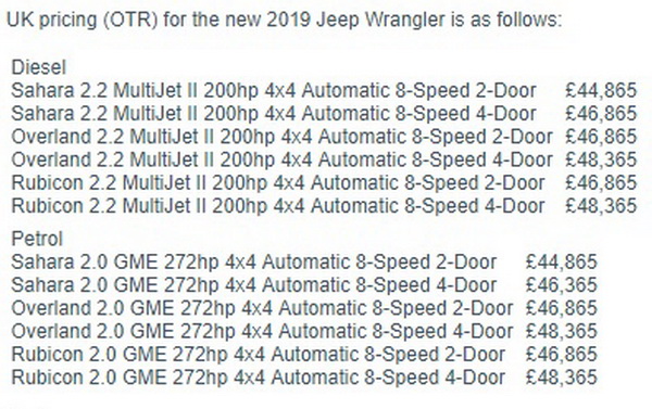 The new petrol Wrangler starts from £44,865 in base Sahara trim, which is the same exact price with its diesel counterpart. In fact, prices throughout the range remain the same, no matter which of the two engines you choose.