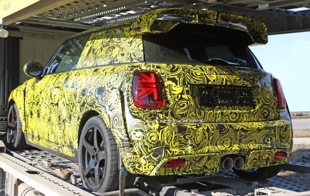 That changes today as these spy images are the first that show the production model in all its (camouflaged) glory. As you can see, this little car means business, adopting the meanest body kit we’ve ever seen fitted to a production Mini Hatch (or Hardtop as it is marketed in America).