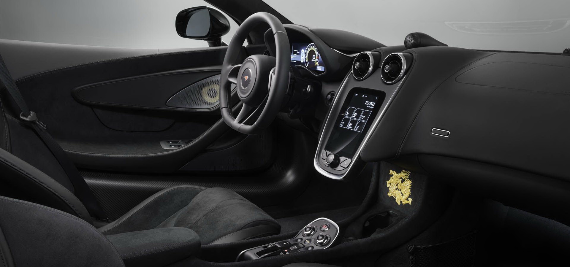 It was created by MSO (McLaren Special Operations) together with Chinese fashion designer and entrepreneur, Mr. Cabbeen. It features an MSO Bespoke Obsidian Black paint and a hand-painted dragon design in Gloss Speedline Gold on both door inserts. Also available are the new 15-spoke GT wheels and the Gloss Speedline Gold brake calipers.
