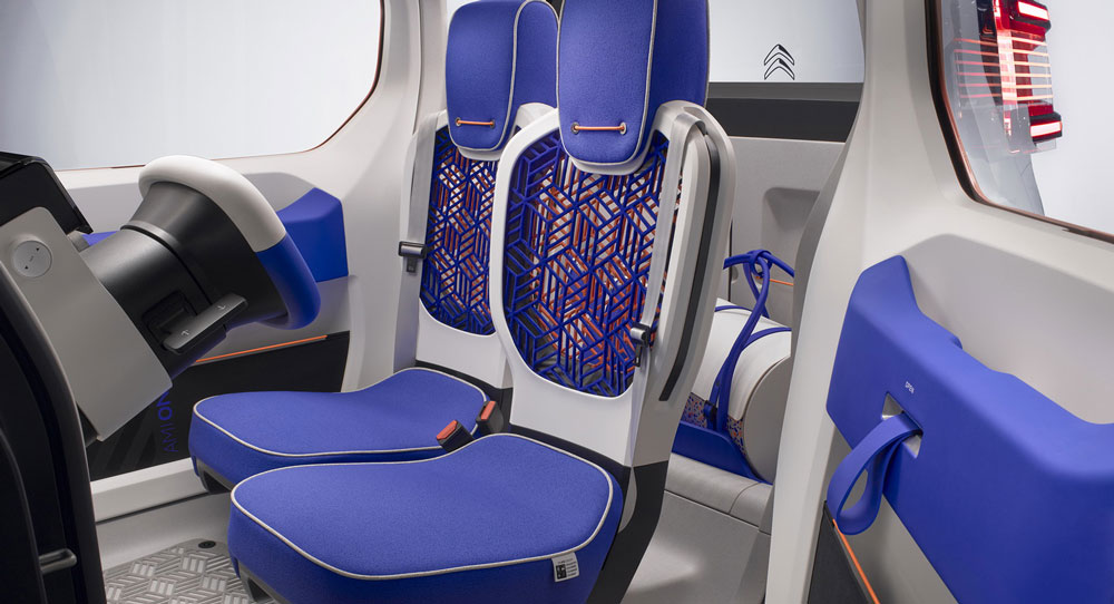 All electric vehicles made after January 1, 2019, must emit an artificial sound at low speeds to warn pedestrians of their approach. Citroen has equipped the Ami One with its own sound signature, which mixes male and female voices forming a sequence of notes that change according to speed.