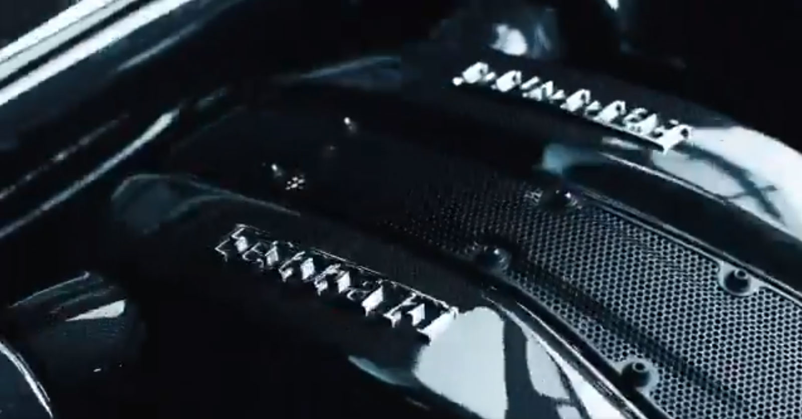 Additional details are hard to make out, but the clip shows a quick glimpse of the car’s engine as well as air intakes with carbon fiber inserts. The final image is a bit more mysterious, but it appears to a fence reflected in the model’s greenhouse.