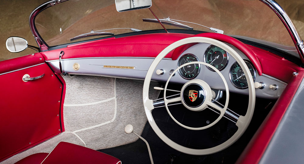 This 356 A Speedster was manufactured in 1958 and shipped to New York. It had a silver paint over a red leather interior, and to this day, it still sports the same color combo. However, everything has been either repaired or replaced as part of a full restoration process.