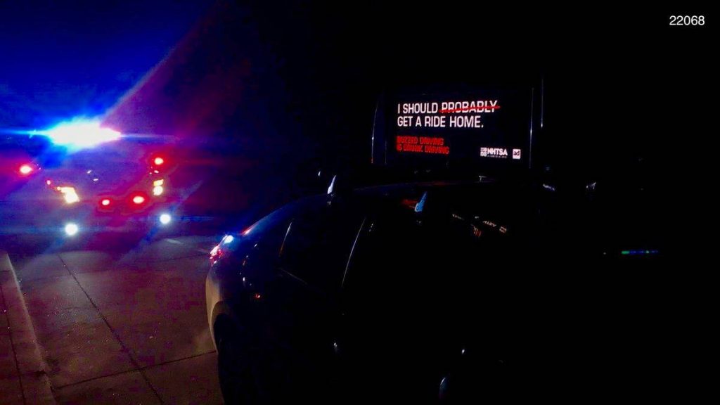 According to the officer, the sign displayed on the suspect’s car is part of a National Highway Traffic Safety Administration campaign to prevent DUI. The sign read “I should probably get a ride home” (with the word “probably” crossed out) and “Buzzed driving is drunk driving.” The NHTSA pays drivers to display messages like these on their cars.