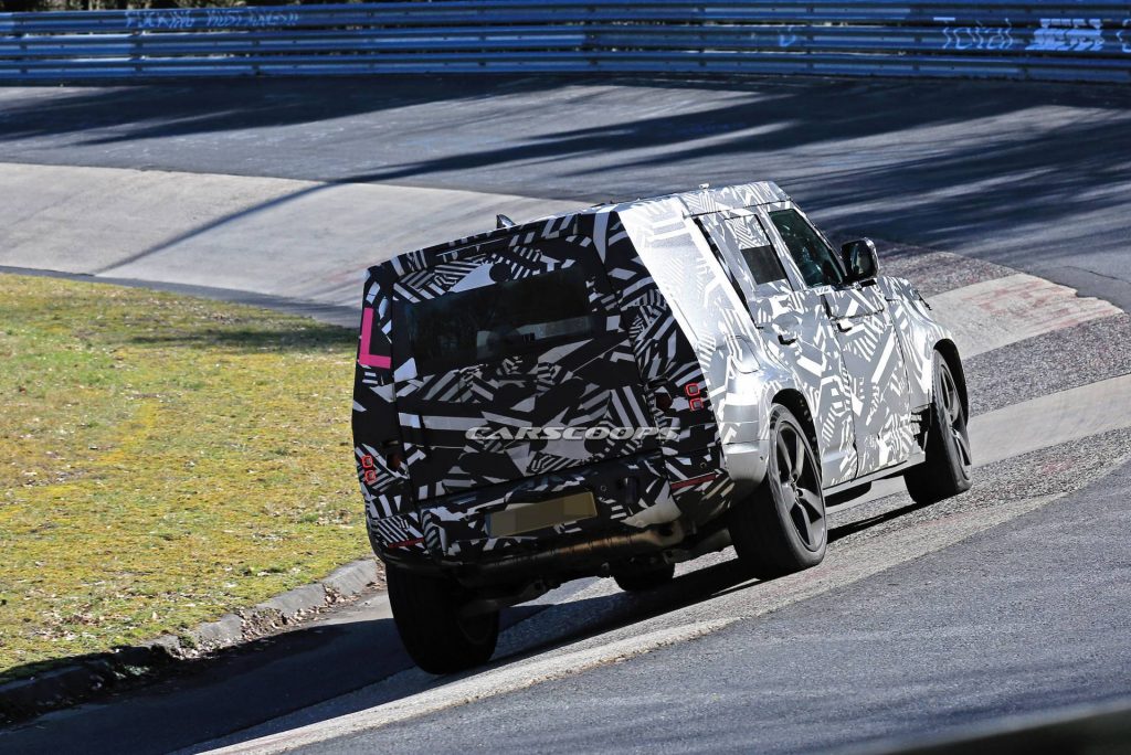 There’s not much to report on the design front as the boxy Defender 110 prototype continues to carry heavy camouflage. Land Rover will also offer the Defender in a short-wheelbase 90 version, and both body styles will use 2.0-liter turbocharged gasoline and diesel units in the entry-level versions and 3.0-liter inline six-cylinder gasoline and diesel power plants with mild hybrid assistance in the upper-range models.