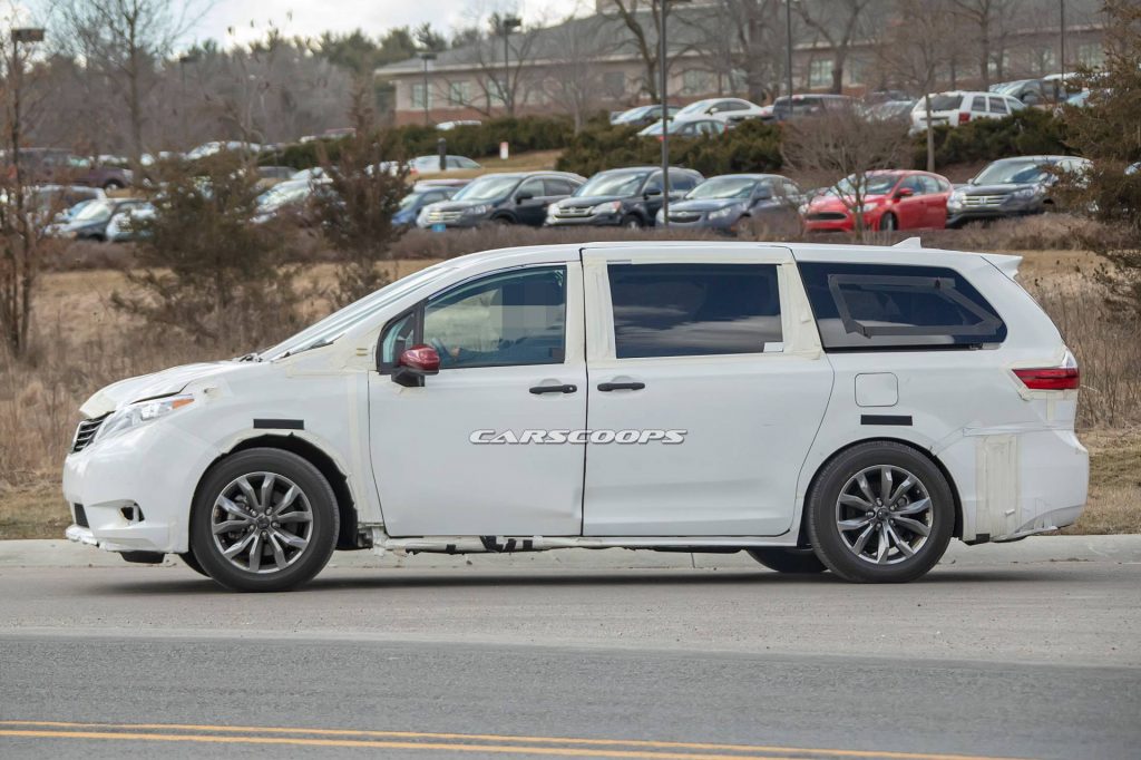 As you can see, some of the body panels have been stretched to accommodate the larger footprint of the fourth-generation Sienna. That’s because the new model will use a stretched version of Toyota’s New Global Architecture (TNGA).