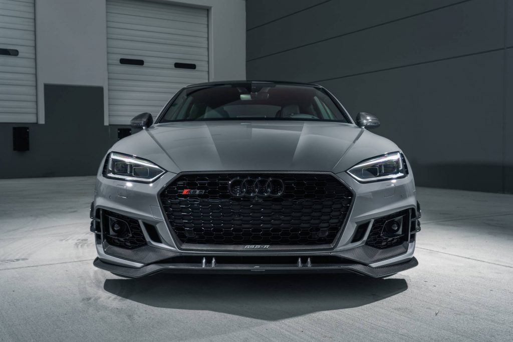 From a visual standpoint, the modified car adds plenty of upgrades compared to the stock RS5 Sportback. The aero package is obviously the highlight and it includes many components in glossy carbon such as the front lip spoiler, front flics, grille frame, wheel arch vents, rear spoiler, and rear skirt add-on.