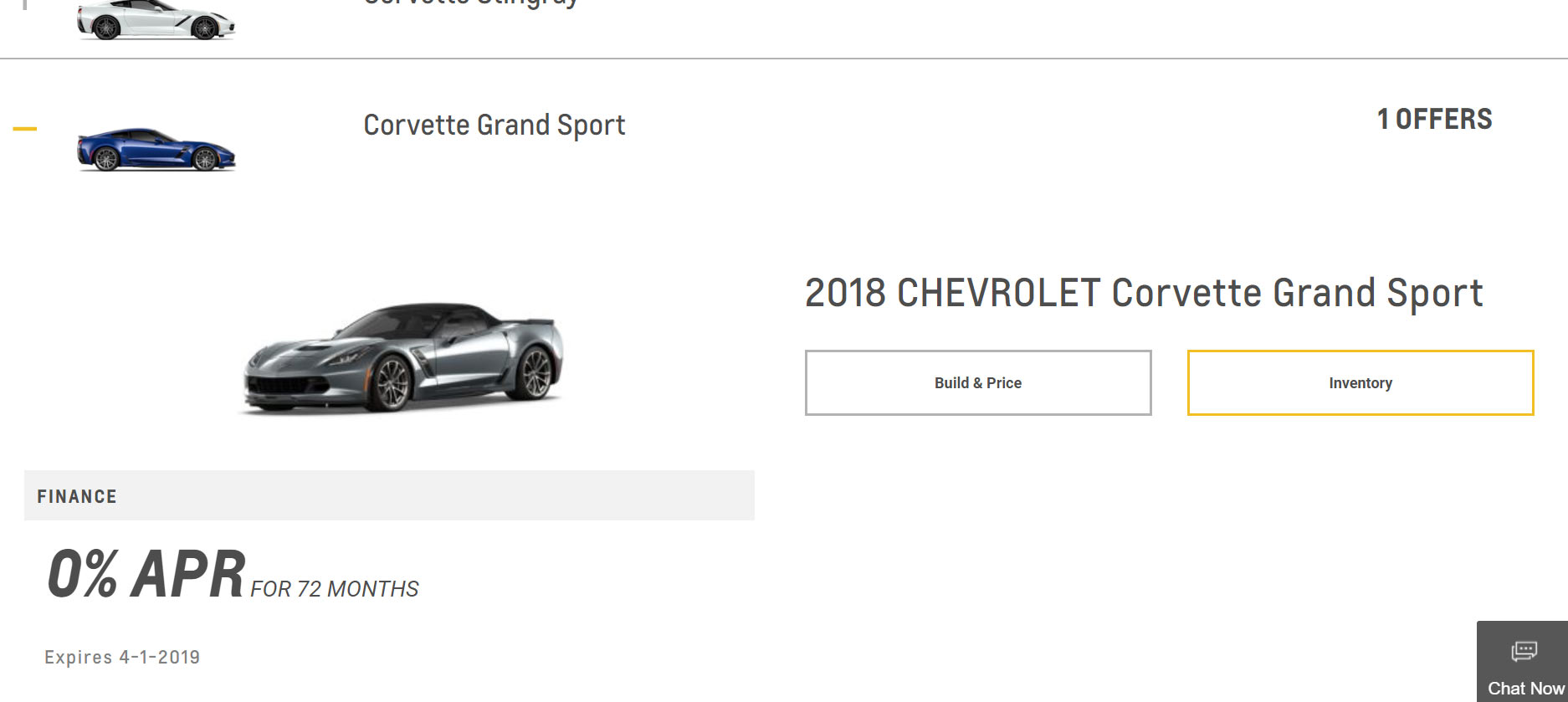 A look at the Chevrolet website reveals that those looking to pick up a 2018 Corvette Stingray, Corvette Grand Sport, or Corvette Z06, have the option of a zero per cent financing offer for 72 months.