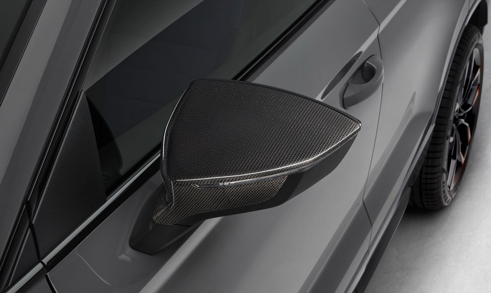 The interior features Petrol Blue Alcantara on the front sports seats, rear seats and door panels, as well as black frame surrounding the air outlets and central console. The copper carbon fiber mouldings frame the dashboard and climate controls and each car gets a set of premium Cupra floor mats.