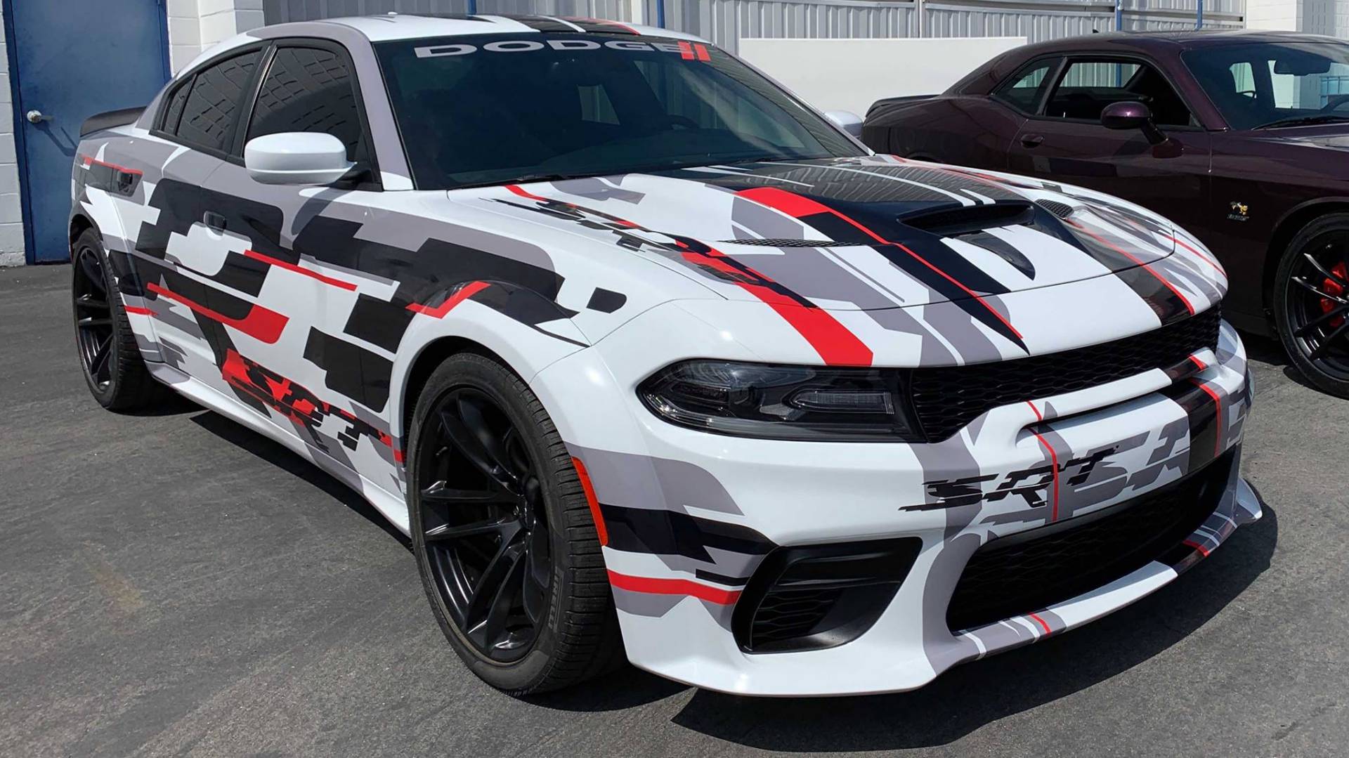 As it turns out, it’s the exact same car that an Instagram user spotted earlier this week near Detroit — the artistic SRT-themed camouflage gives it away. Dodge didn’t share much about Charger Widebody Concept, posting only two photos on its media website and Facebook page.