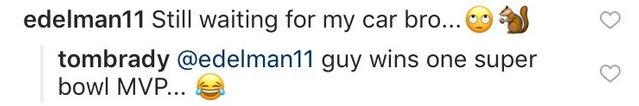 “Waitin for mine tooooo!!!” said NY Giants wide receiver Odell Beckham Jr, while David Beckham commented “Exciting times”. Funny enough, Brady’s teammate on the Pats and current Super Bowl MVP Julian Edelman also had something to say: