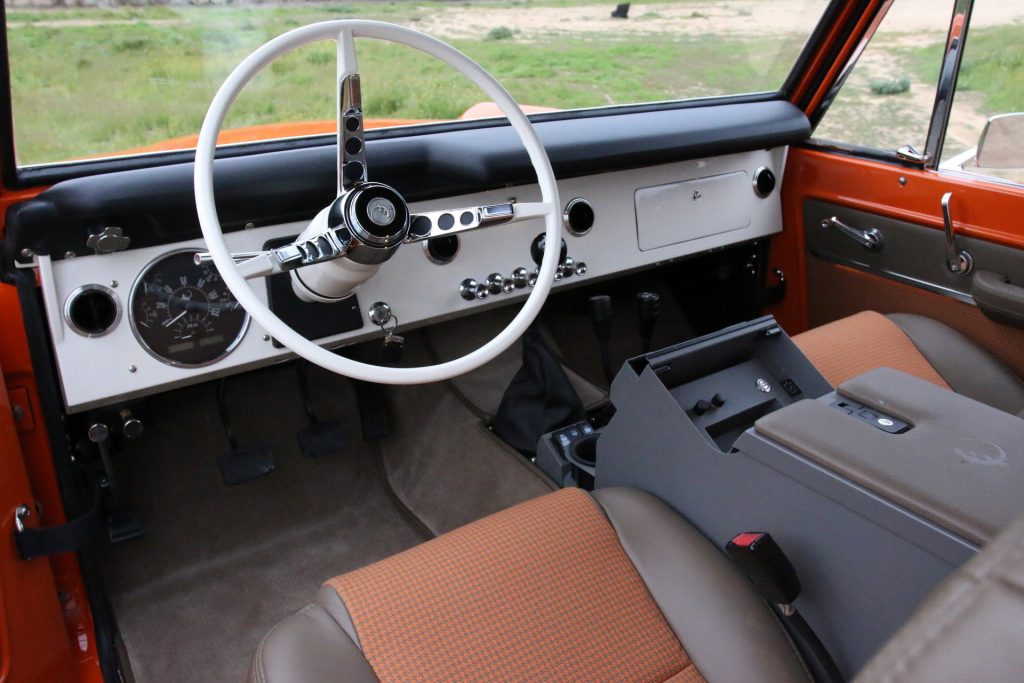 As with every Ford Bronco that goes through ICON’s extensive treatment, this one rides on a new Art Morrison chassis with coil-over suspension that includes Fox Racing dampers and Eibach springs, as well as front and rear sway bars.