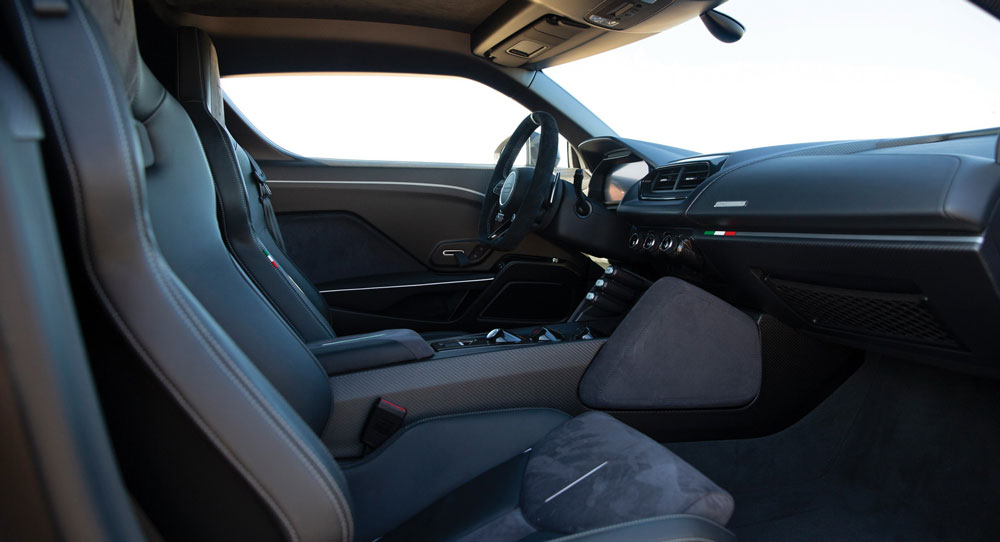 The ZeroUno is estimated to sell for €950,000-€1,500,000 ($1,075,680-$1,698,440) and comes with a matte black finish over a black interior and Italian flag appliques. It has digital gauges, Alcantara and carbon fiber trim and automatic climate control.