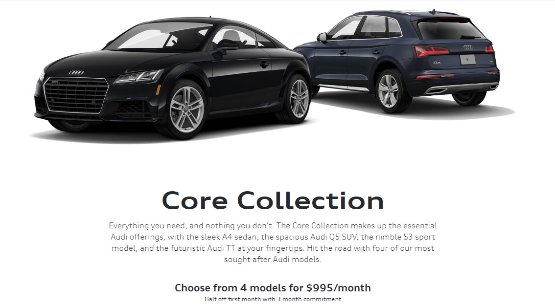 In a statement, Audi of America CFO Matt Carpenter said “Building off of the early success of the Audi Select product, the introduction of the Core Collection now offers our Dallas-Ft. Worth customers even more options to consider.” He went on to say the automaker is committed to creating “a suite of mobility products and services that offer increasing access and flexibility to our Audi customers.”