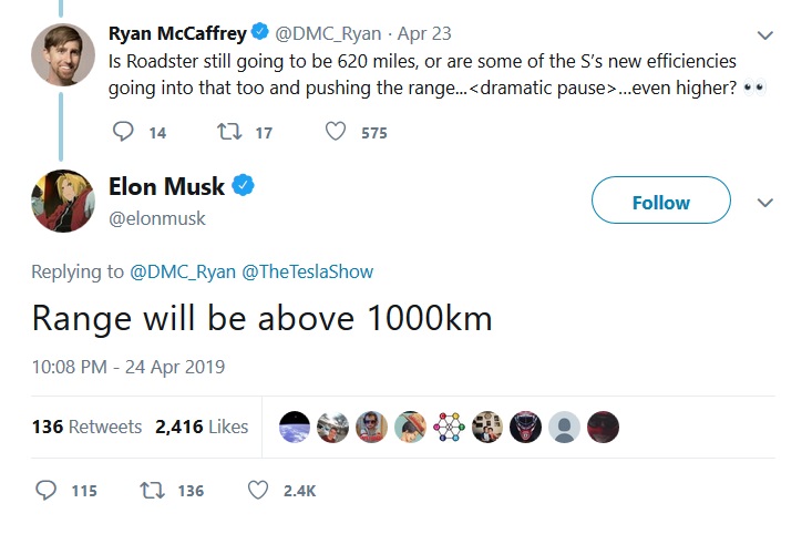 The outspoken Tesla CEO was asked if the autonomy of the Roadster is “still going to be 620 miles (998 km)”, to which he responded the “range will be above 1,000 km”. That’s more than 621 miles, whereas the initial estimate was up to 620 miles (998 km), in ideal conditions, of course, and without abusing the throttle.