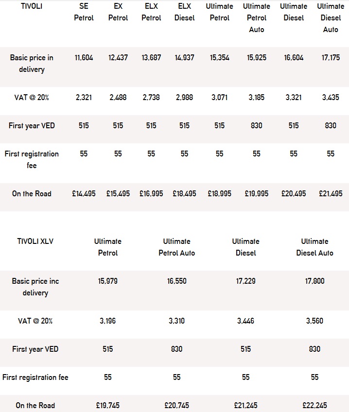 The longer Tivoli XLV is still part of the offering. It can be ordered in the same trim levels as the regular Tivoli and has an expanded load capacity of up to 720 liters (25.4 cu-ft). It is also available with the new 1.6-liter petrol and diesel engines, and can be had with either a six-speed manual or a six-speed automatic transmission, from £19,745 ($25,977/€23,124).