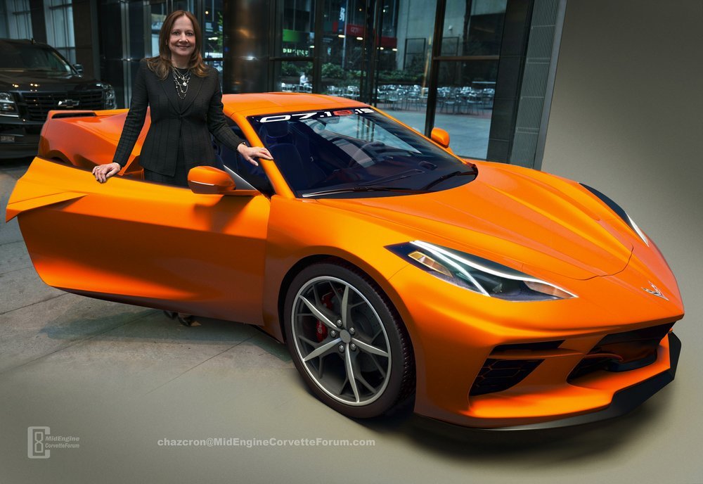 As for the second rendering, it is based around an image of the new Corvette which Chevrolet published last week featuring GM chief executive Mary Barra. The supercar in this rendering has been finished in a bright shade of orange and could be the best look we’ve had yet of the C8. Not only do the body panels of the supercar look the part, but the silver and black wheels also provide the car with a very sporty look.
