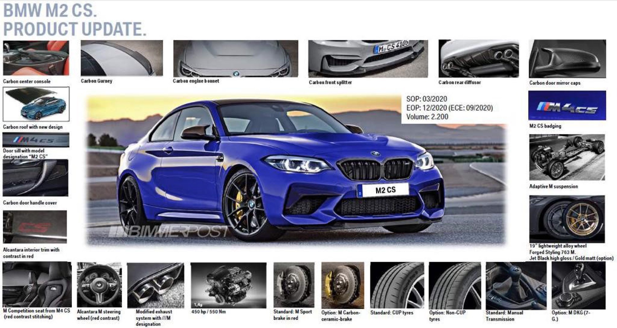 A claimed product bulletin of the upcoming BMW M2 CS has surfaced and reveals a host of important details about the even-faster M2 variant.