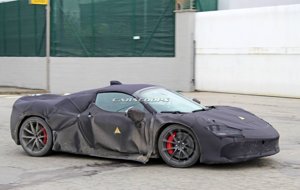 These are the first photos of an actual prototype and not a test mule. Mind you, a prototype was also chased by a motorcyclist and a 488 Spider driver last week, but this is the clearest look yet at the hybrid supercar that will sit above both the F8 Tributo and the 812 Superfast in Ferrari’s lineup.