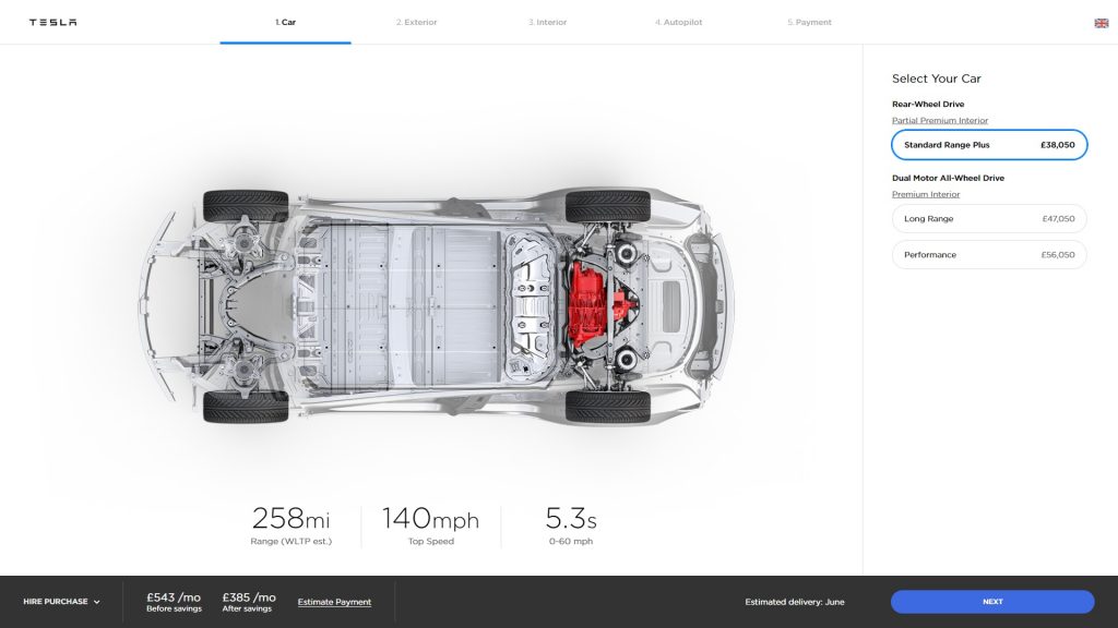 The Model 3 is priced from £38,900 in base Standard Range Plus configuration, which offers a driving range of 258 miles (415km) on the latest WLTP cycle.