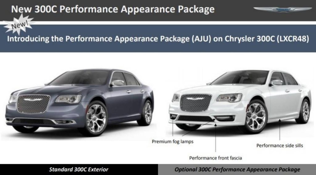 Essentially, what Chrysler is doing is expanding the availability of the Sport Appearance Package from the 300S to the 300C top-of-the-line model, changing the name into Performance Appearance Package in the process.