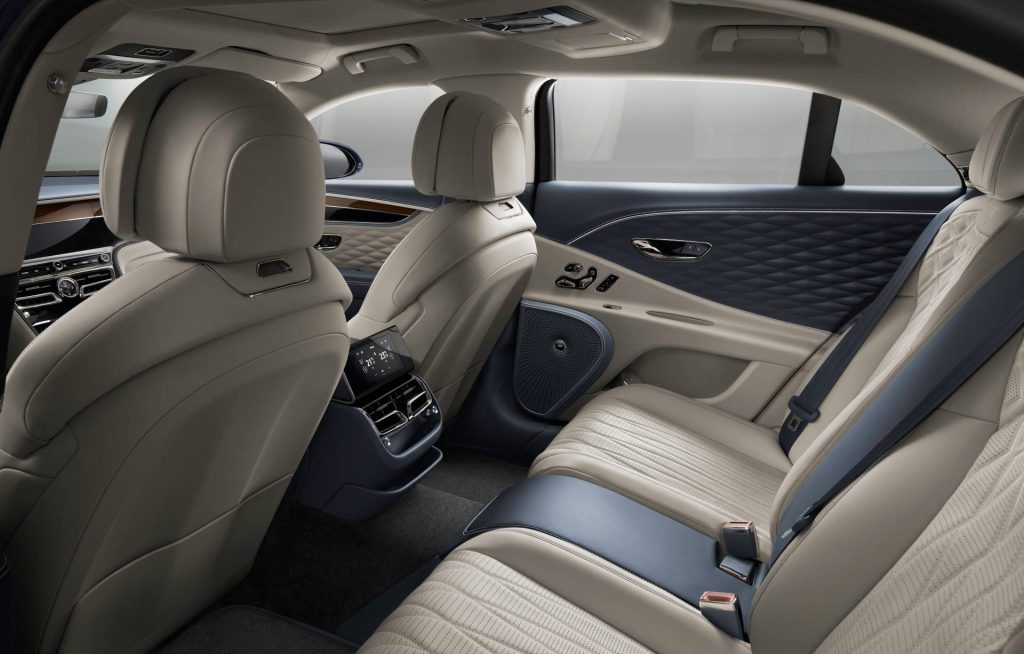 The longer wheelbase also has an impact on the exterior design, with the new Flying Spur now appearing more stately and muscular at the same time. Design highlights include the flared haunches, new 21-inch wheels, cut-crystal effect LED matrix headlights with chrome sleeves, and new LED taillamps with “B” signature. As a testimony of the modern Flying Spur’s progress, it gains access to a retractable and illuminated “Flying B” hood ornament for the first time.