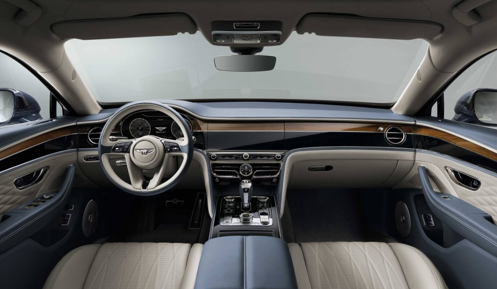The dashboard is largely carried over from the Conti GT, including the unique rotating center console with a choice of a 12.3-inch digital touchscreen, analog dials or digital detoxifying veneer. Modern touches also include the HD digital instrument panel display, remote control touch screen for rear passengers, and panoramic glass sunroof stretching the full length of the roof.