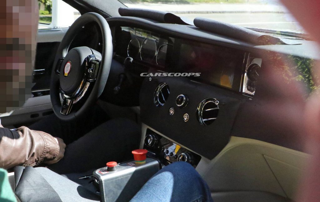 This latest set of photos reveals the dashboard of the new Ghost for the first time — or at least a part of it given that it’s still covered. While it obviously draws inspiration from the Phantom limousine and Cullinan SUV, the interior of the 2021 Ghost has its own style. The lower part of the dashboard, including the center console, looks very similar to the aforementioned models.