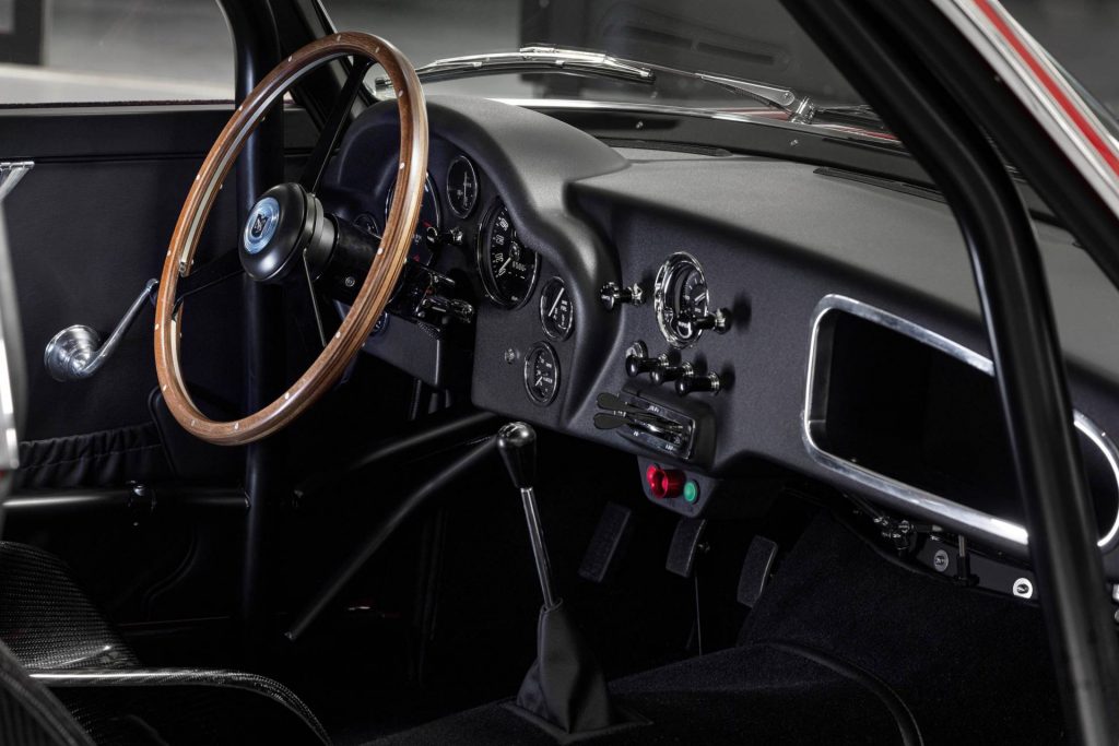 Craftspeople at the Heritage Division in Newport Pagnell spent around 4,500 hours building the first DB4 GT Zagato Continuation car. The vehicle is finished in Rosso Maja paint matching the original color of the 1960s car. The Borrani silver painted wheels and polished lips provide a nice contrast to the body.