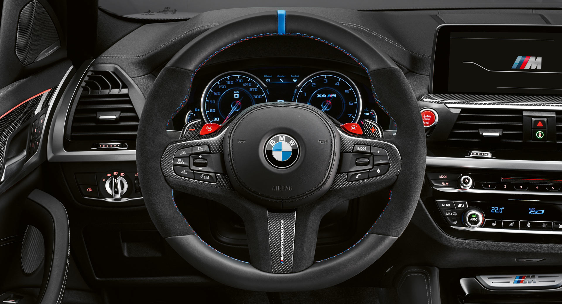 Like other M Performance parts available across the BMW family, those offered for the X3 M and X4 M include a host of interior trimmings. For example, there is an M Performance steering wheel on offer with high-gloss carbon fiber. Customers can also order M Performance carbon fiber shift paddles, a carbon gear selector knob and high-quality velvet velour floor mats with M Performance inscription.