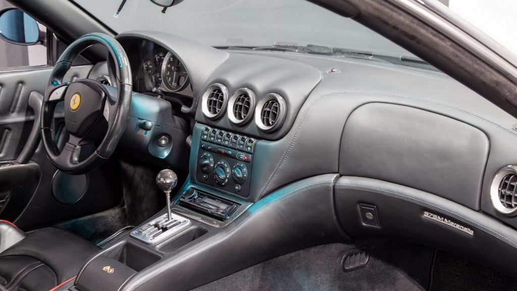 Power comes from a naturally aspirated 5.75-liter V12 engine with 508hp (515PS) and 434lb-ft (588Nm) of torque, which sent the 575M at 202mph. It was also the first time Ferrari offered the F1 paddle-shift transmission in a V12 model, which is why the manual cars are so rare.