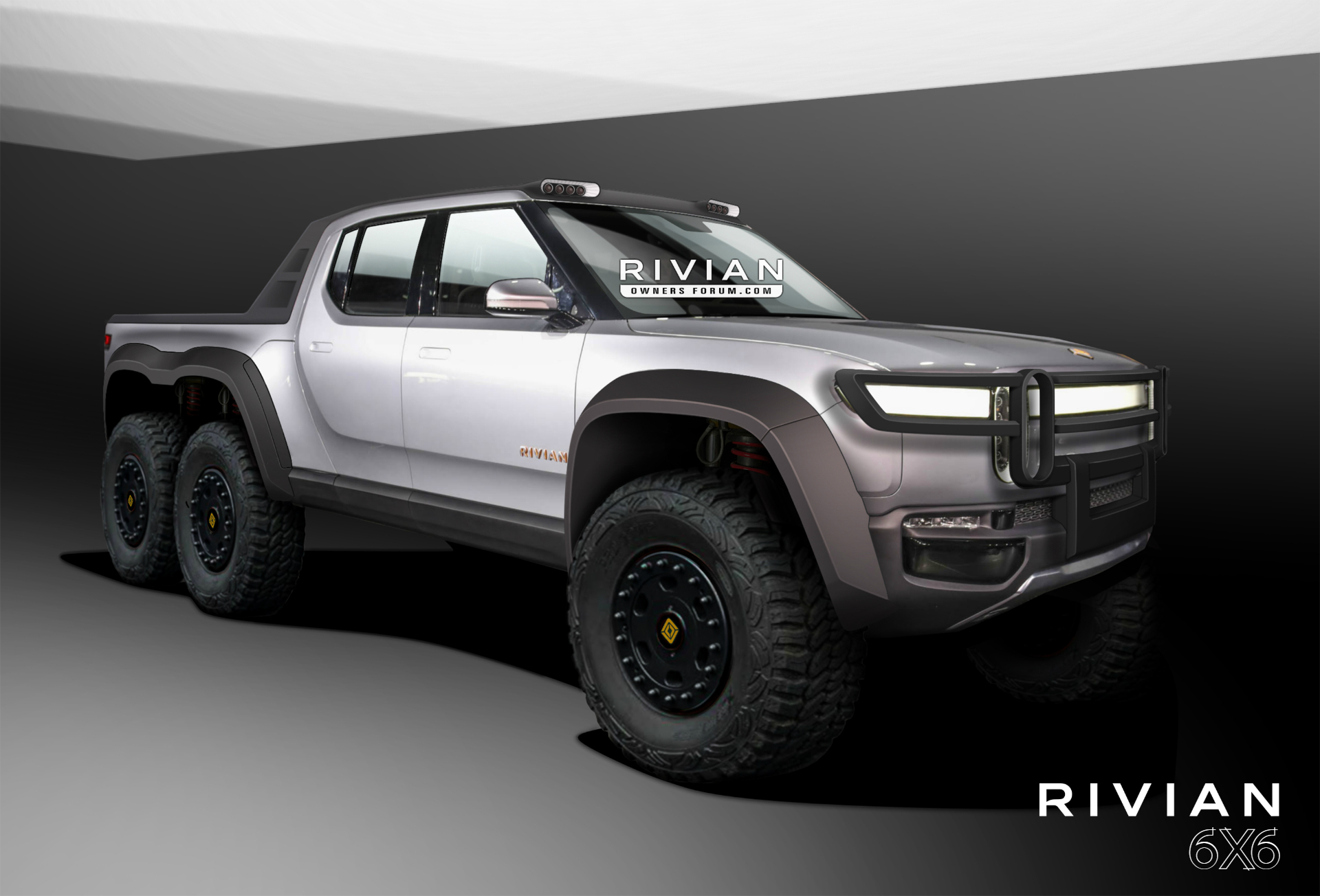 One thing we’re pretty sure the company isn’t developing is a six-wheeled R1T, but that’s exactly what these renderings depict. They were created by a user at the Rivian Owners Forum and show the R1T with a six-wheeled design similar to the insane Hennessey-tuned Ford F-150 Raptors out there. The enlarged Rivian also happens to look just as good, if not better, than the Ford.