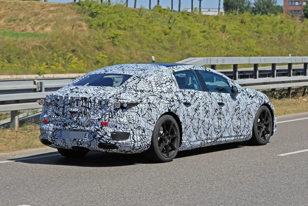 Seen from the front, the grille is much flatter than on the 2020 S-Class and has a different shape as well. It’s flanked by sleek headlights that seem similar to the CLS — unless the camouflage is playing with us. The headlights appear to be the finished items, unlike the taillights which are still temporary.