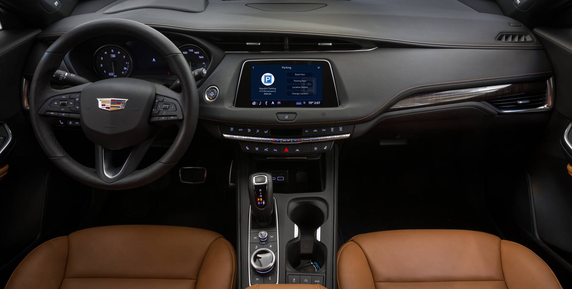 Eligible Cadillac drivers can locate, reserve and pay for parking even before reaching their destination using their in-vehicle touchscreen. The new capability is powered by ParkWhiz, an Arrive company.