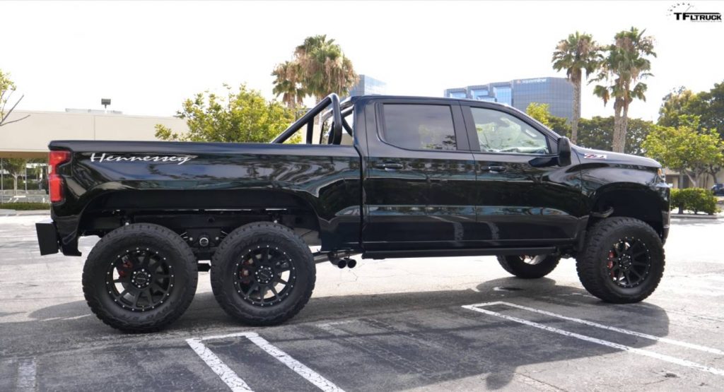 Based on the all-new Chevrolet Silverado, the suggestively named Hennessey Goliath 6×6 is no doubt the biggest, baddest custom Silverado made so far and features one additional axle complete with 20-inch wheels, BFG 37-inch off-road tires, and brakes.
