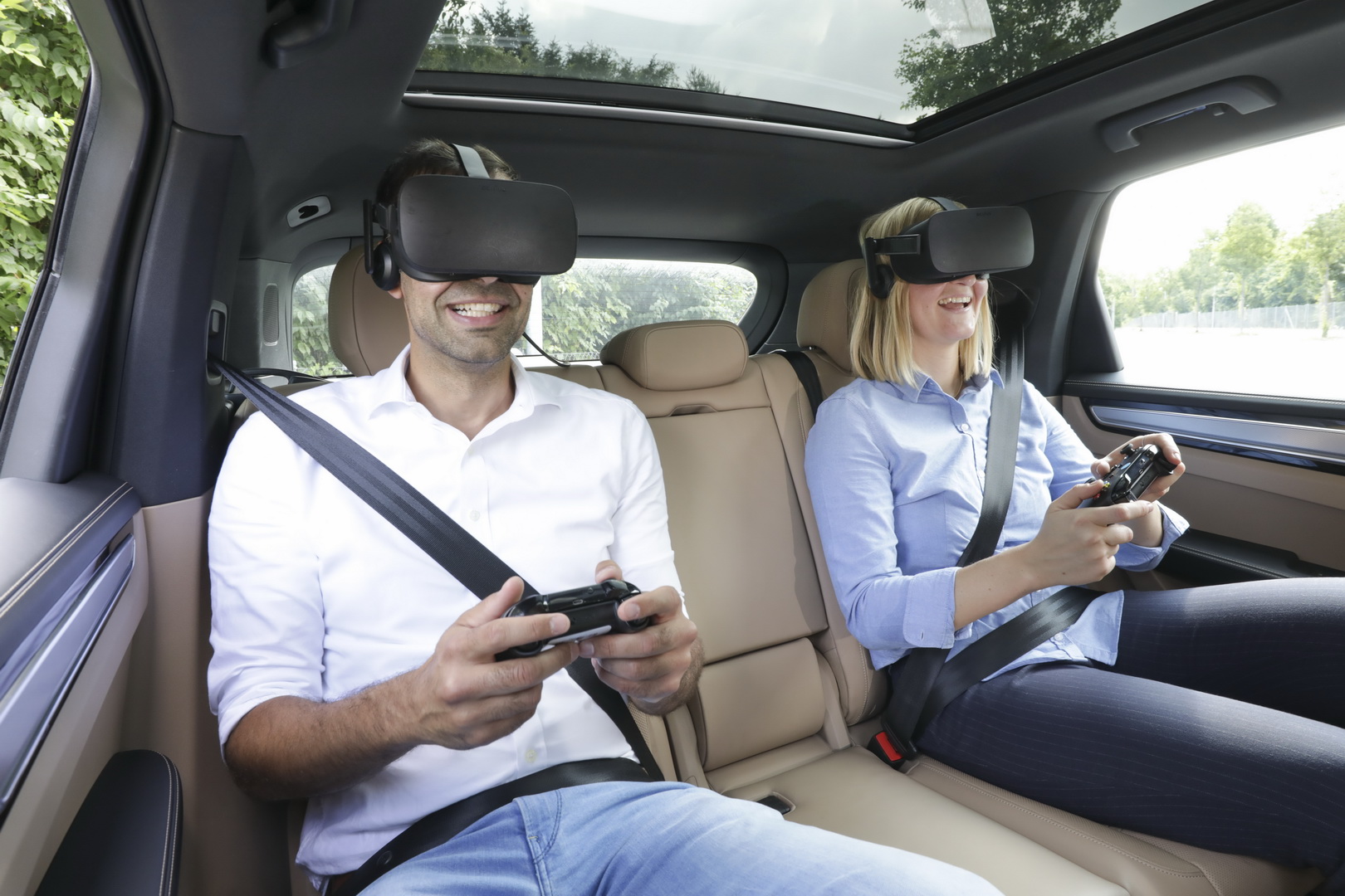 The headset features sensors and is paired to the car, so that it can adapt to its driving movements in real time. Thus, if it’s being driven around the curve, the space shuttle that the passenger is ‘traveling in’ will change direction. The system can also entertain occupants with videos and can adapt the length of a VR game to the calculated duration of the journey.