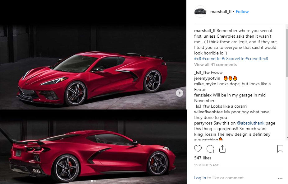 These images, shared across Instagram, depict the new Corvette in a bright shade of red and come shortly after an image of the mid-engined supercar’s interior surfaced. While it is hard to determine if the images are legitimate or if they are just low-resolution renderings, the car depicted looks virtually identical to what past renderings of the car have shown.