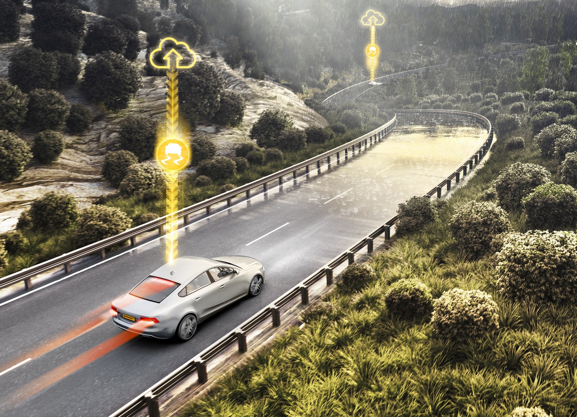 The friction coefficient data is transmitted to the cloud and compared to the friction coefficients of other vehicles in the area. The company also examines weather data such as precipitation and the temperature. All of this information is then processed using artificial intelligence to help predict hazardous situations.
