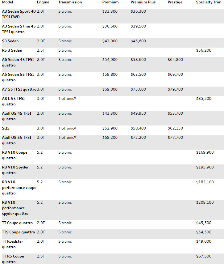 Audi has announced a host of changes to its 2020 lineup in the United States.