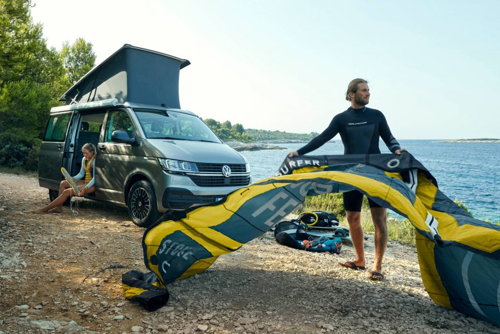 By saving space compared to the broader kitchen in the Coast and Ocean, the facelifted California Beach can be ordered with a three-seater bench. This opens up the possibility for families of five to go camping with it and have an onboard kitchen as well.