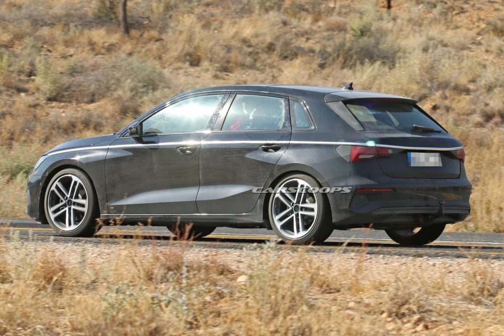 The chrome trim underlining the car’s waistline is probably the biggest novelty, but other than that, the new A3 looks clean and a bit more dynamic than its predecessor thanks to a lower, wider body. In the photos we can also see that each prototype rides on different alloy wheels: a five-spoke design that seems like the base version (probably a 16-inch) and a sportier double-spoke rim (likely a 17- or 18-inch).
