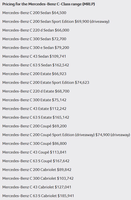 The 2020 C200 Sedan starts at AUD $64,500 (USD $43,435), whereas the C300e Sedan can be had from AUD $79,200 (USD $53,334). The Sport Edition package will cost you an extra AUD $7,700 (USD $5,185) for the Sedan and Estate, and AUD $7,200 (USD $4,849) for the Coupe.