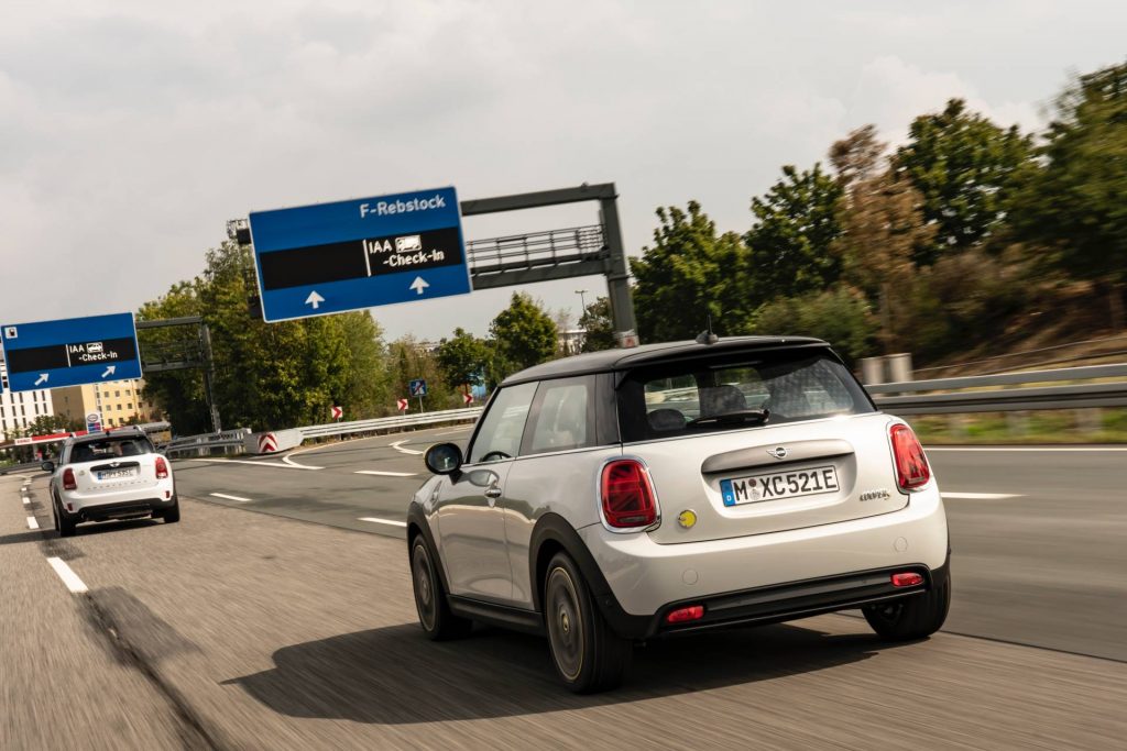 Mini’s first mass-produced EV drove from BMW Group’s home in Munich to the exhibition grounds in Frankfurt/Main for its world premiere, covering 400 emissions-free kilometers (248 miles) in the process.