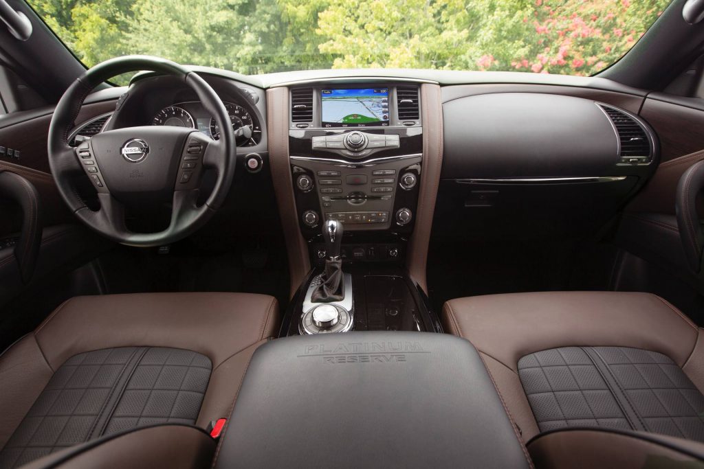 Nissan’s flagship SUV continues to offer seating for up to eight passengers and a cavernous interior with flexible cargo space. The engine remains the same brawny 5.6-liter Endurance V8 shared with the Infiniti QX80. Rated at 390 horsepower (395 PS) and 394 lb-ft (533 Nm) of torque and linked to a seven-speed automatic transmission, the power plant contributes to a 8,500-pound (3,855-kg) towing capacity in both 4WD and 2WD configurations.