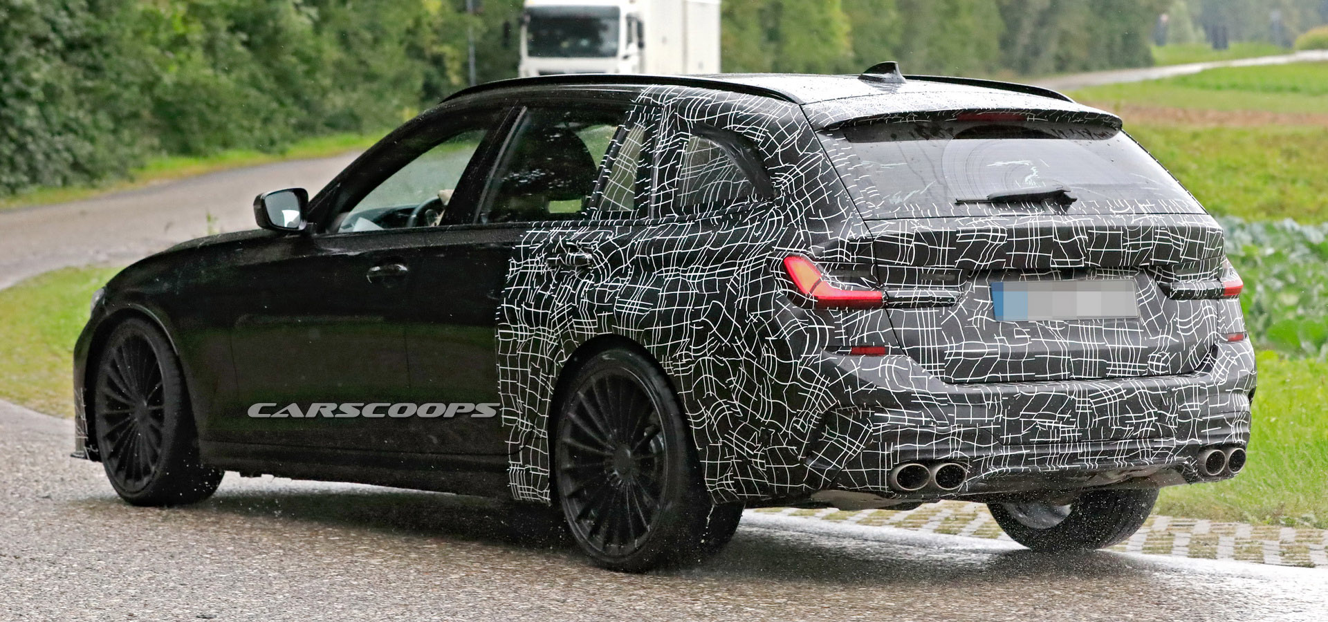 Yet, the wheels are a dead giveaway as to what type of car this is – classic Alpina design. Also, the fact that the badge is hidden is very telling too. So despite the camouflage, we can already tell that this is one seriously sporty-looking wagon, and word has it that it definitely will not be short on power.