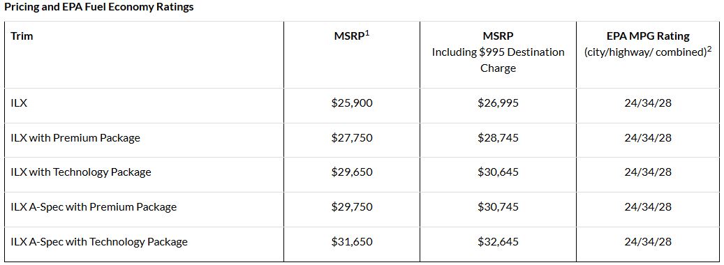 The 2020 ILX can be purchased with three distinct packages, named Premium, Technology and A-Spec, each powered by a 201 HP 2.4-liter i-VTEC four mated to an 8-speed dual clutch transmission with steering wheel-mounted paddle shifters.